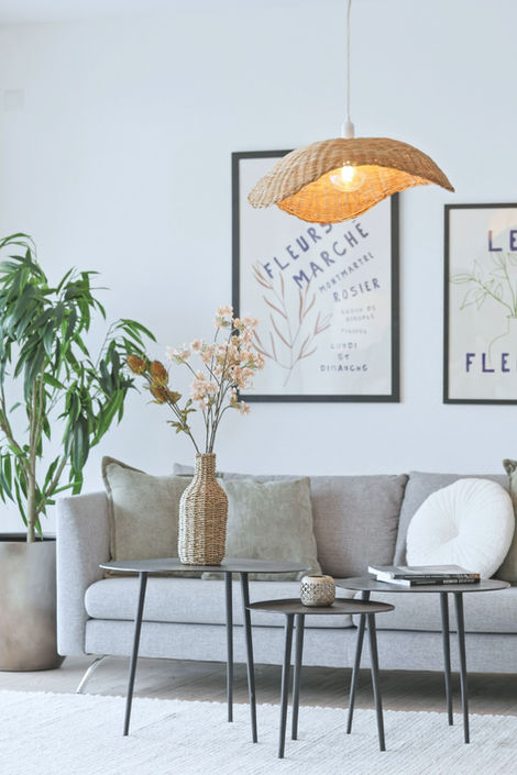 In jedem Paket inklusive: Der gezielte Einsatz von Wandbildern, Pflanzen, Hängeleuchten, Stehlampen, echten Stühlen, Spiegel, Kleiderständern und hochwertiger Designer-Dekoration für eine einladende Raumatmosphäre.